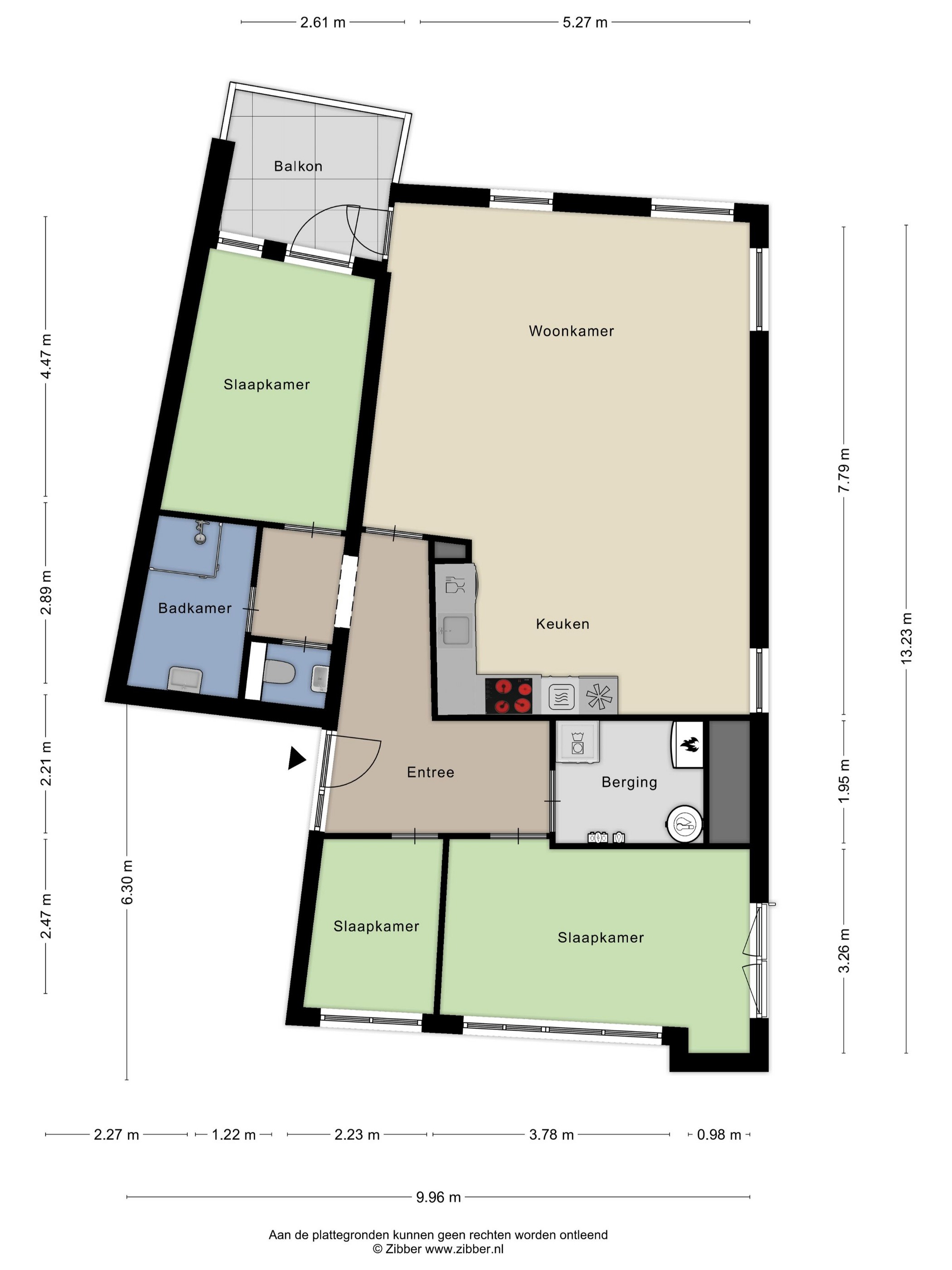 Drie slaapkamers (resp. 16,5 m², 15,8 m² en 6,2 m²) waarvan een met toegang tot het balkon en een met hoekligging en daarmee een fraai uitzicht op de omgeving.