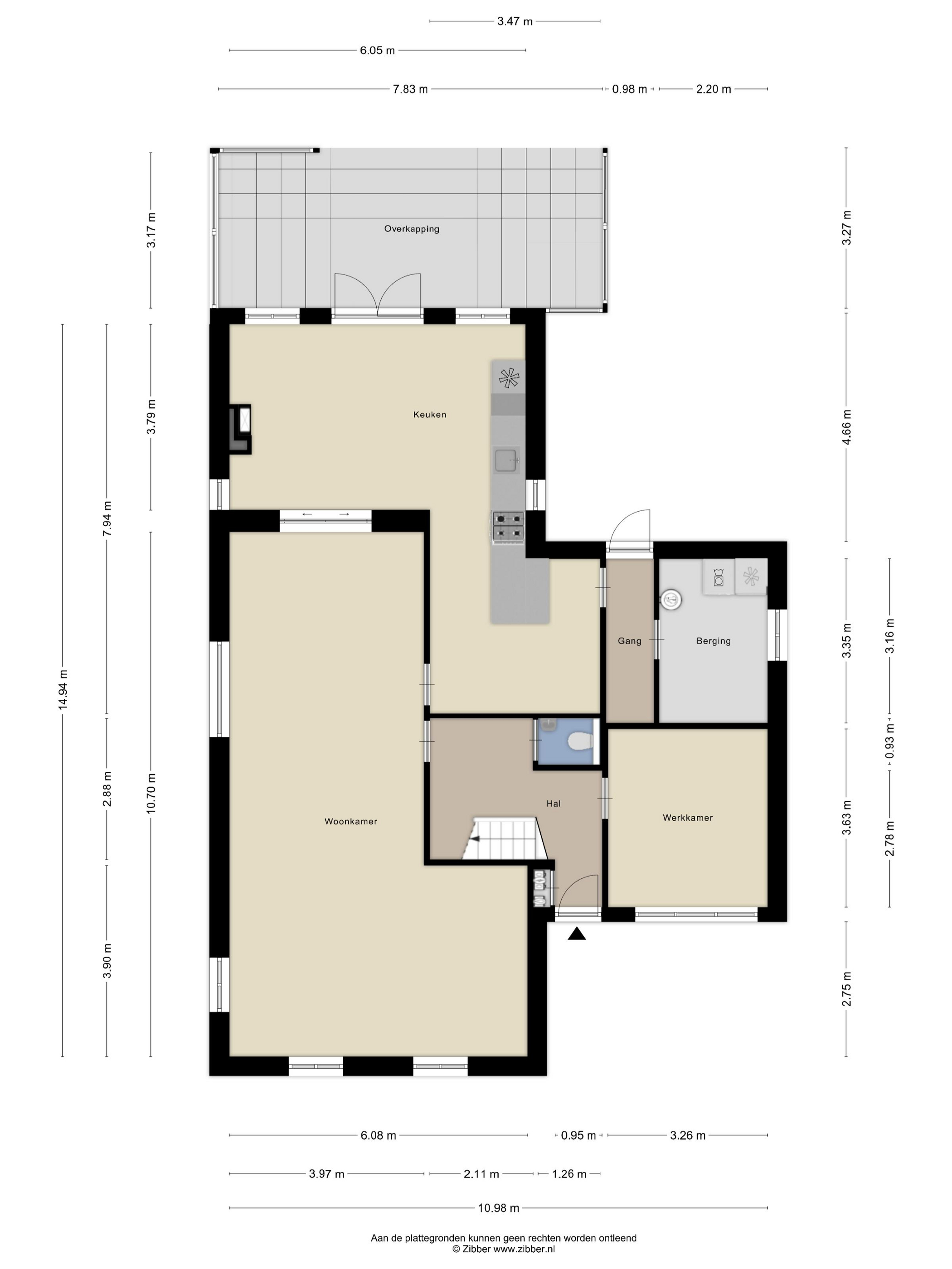 Aan de voorzijde van de woning bevindt zich een comfortabele werkkamer/kantoor – perfect voor werken aan huis. Aansluitend gesitueerd is een praktische bijkeuken met witgoedaansluitingen en extra bergruimte.